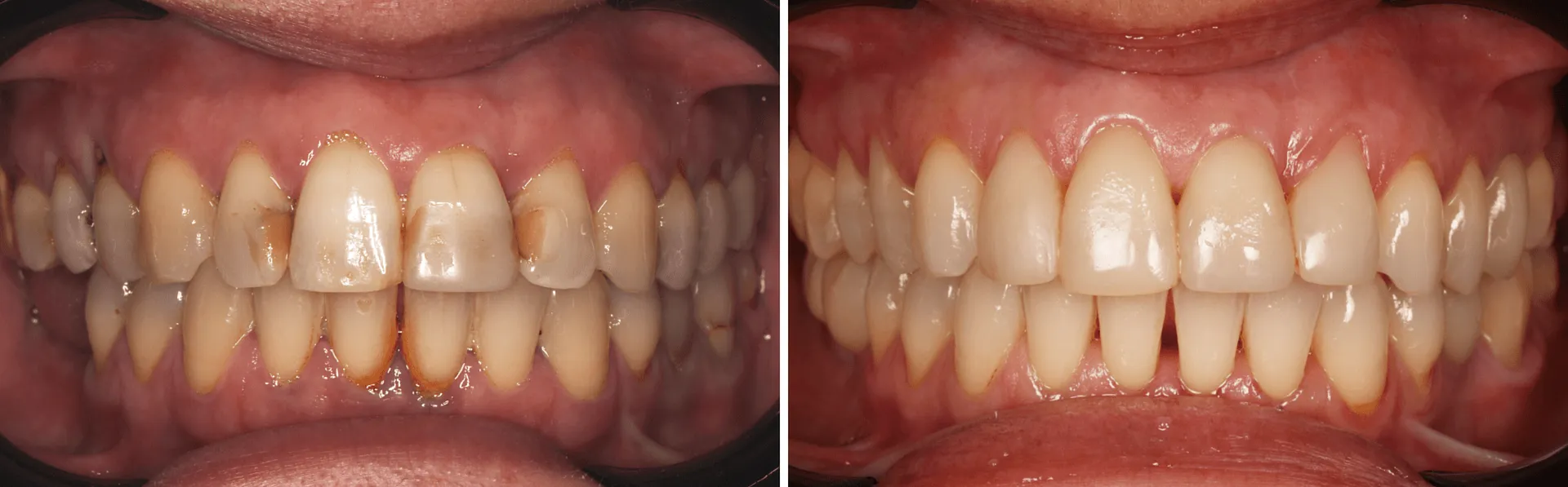 Com recurso a um branqueamento dentário e à realização de novas restaurações, conseguimos melhorar não só a estética, mas também a funcionalidade do sorriso da paciente.
